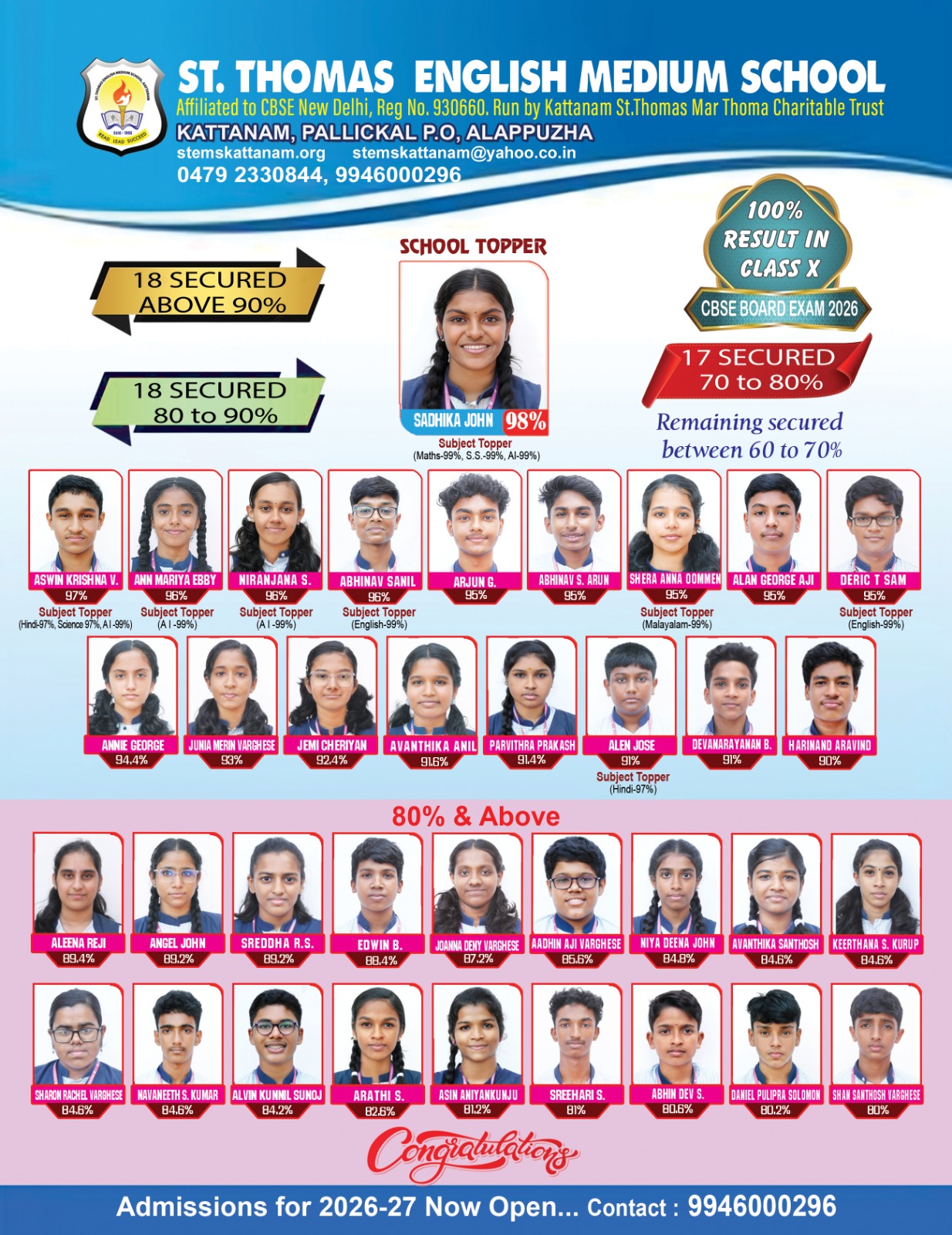 St. Thomas Senior Secondary School is a Co-educational Institution under the management of Kattanam St. Thomas Marthoma Charitable Trust. STEMS offers holistic education based on CBSE curriculum using modern teaching techniques from Nursery to Class XII.
