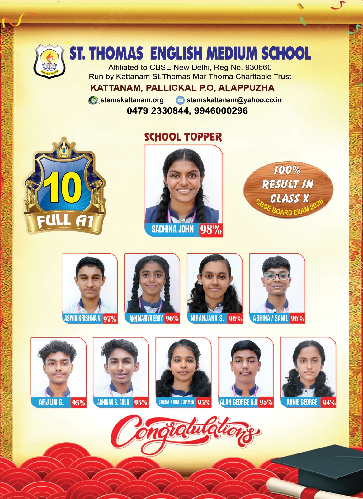 St. Thomas Senior Secondary School is a Co-educational Institution under the management of Kattanam St. Thomas Marthoma Charitable Trust. STEMS offers holistic education based on CBSE curriculum using modern teaching techniques from Nursery to Class XII.